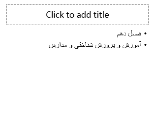 محیط کاری: محتویات اسلایدها از قبیل متن، عکس، فیلم، انیمیشن و… در این بخش قرار میگیرند.