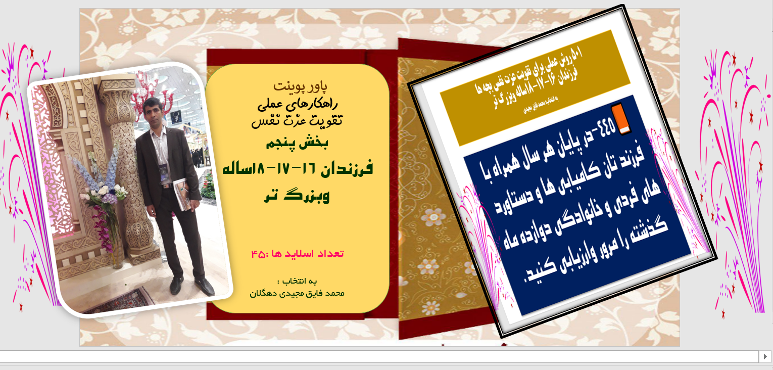 پاورپوینت ۵۰۱ روش عملی برای تقویت عزت نفس بچه هافرزندان ۱۶-۱۷-۱۸ساله وبزرگ تر