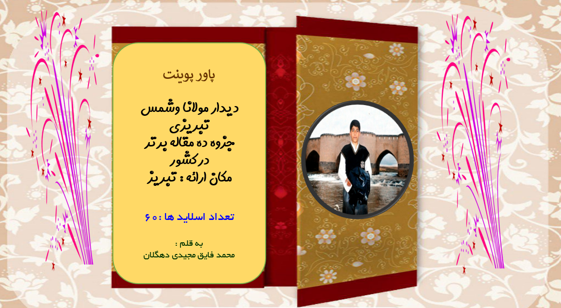 پاور پوینت چگونگی آشنایی شمس بر مولوی وتاثیرات این آشنایی جزوه ده مقاله برتر درکشور(۶۰اسلاید)