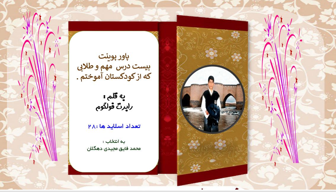 پاور پوینت بیست درس مهم و طلایی که از کودکستان آموختم به قلم :رابرت فولگوم (۲۸ اسلاید)