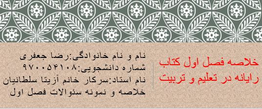 خلاصه فصل اول کتاب رایانه در تعلیم و تربیت