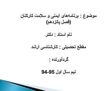 برنامه های ایمنی و سلامت کارکنان اداره و شرکت ها