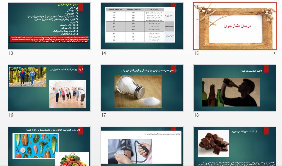 فایل پاورپوینت آزمایش اندازه گیری فشارخون علل ایجاد فشار خون و درمان آن