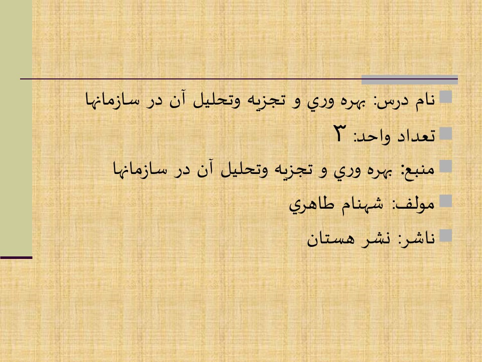 بهره وری و تجزیه وتحلیل آن در سازمانها شهنام طاهری