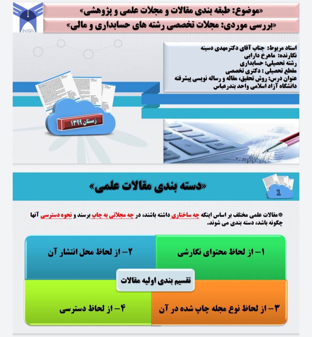 طبقه بندی مقالات و مجلات علمی(حسابداری)