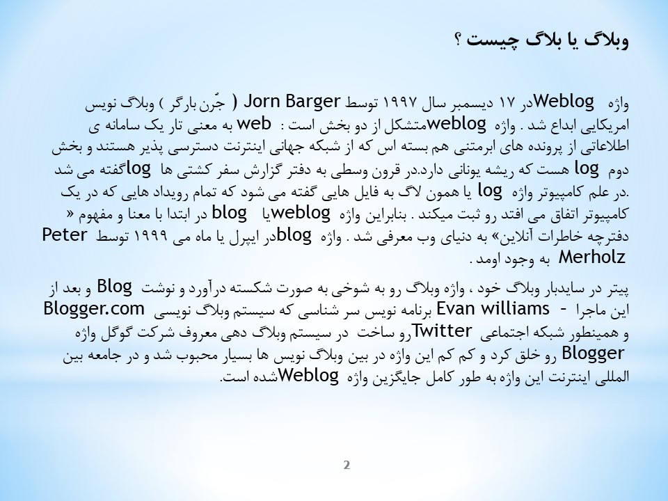 مفاهیم وبلاگ نویسی در زبان فارسی