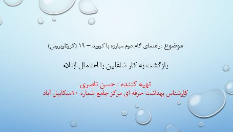 الزامات سلامت محیط و کار در بازگشت به کار شاغلین با احتمال بالا ( پروتکل بهداشتی مقابله با کووید – ۱۹)