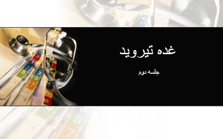 اسلاید 34: هيپوتيروئيديسم: كم كاري تيروئيد و كاهش ترشحات آن است كه ميتواند از يك بيماري خود ايمني يا كمبود يد در رژيم غذايي ناشي شود. واژه گواتر به معني بزرگ شدن غده تيروئيد است كه در كم كاري تيروئيد با تحريك مداوم TSH و توليد مقادير عظيمي تيروگلوبولين در داخل فوليكول هاي تيروئيدي ايجاد مي شود.اختلالات تيروئيدی