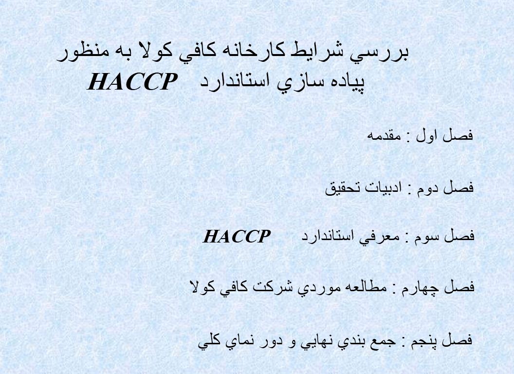 بررسی شرایط کارخانه کافی کولا به منظورhaccp