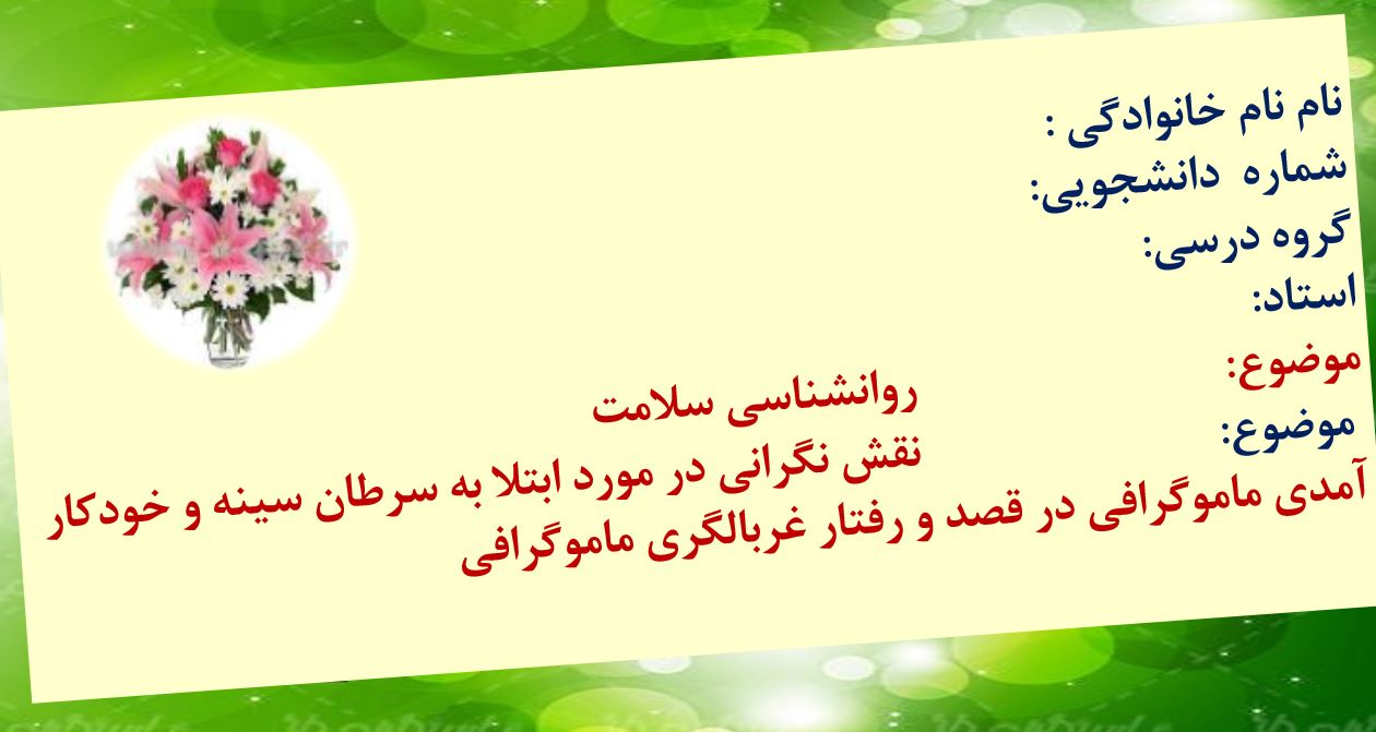 پاورپوینت نقش نگرانی در مورد ابتلا به سرطان سینه و خودکار آمدی ماموگرافی در قصد و رفتار غربالگری ماموگرافی – – Copy