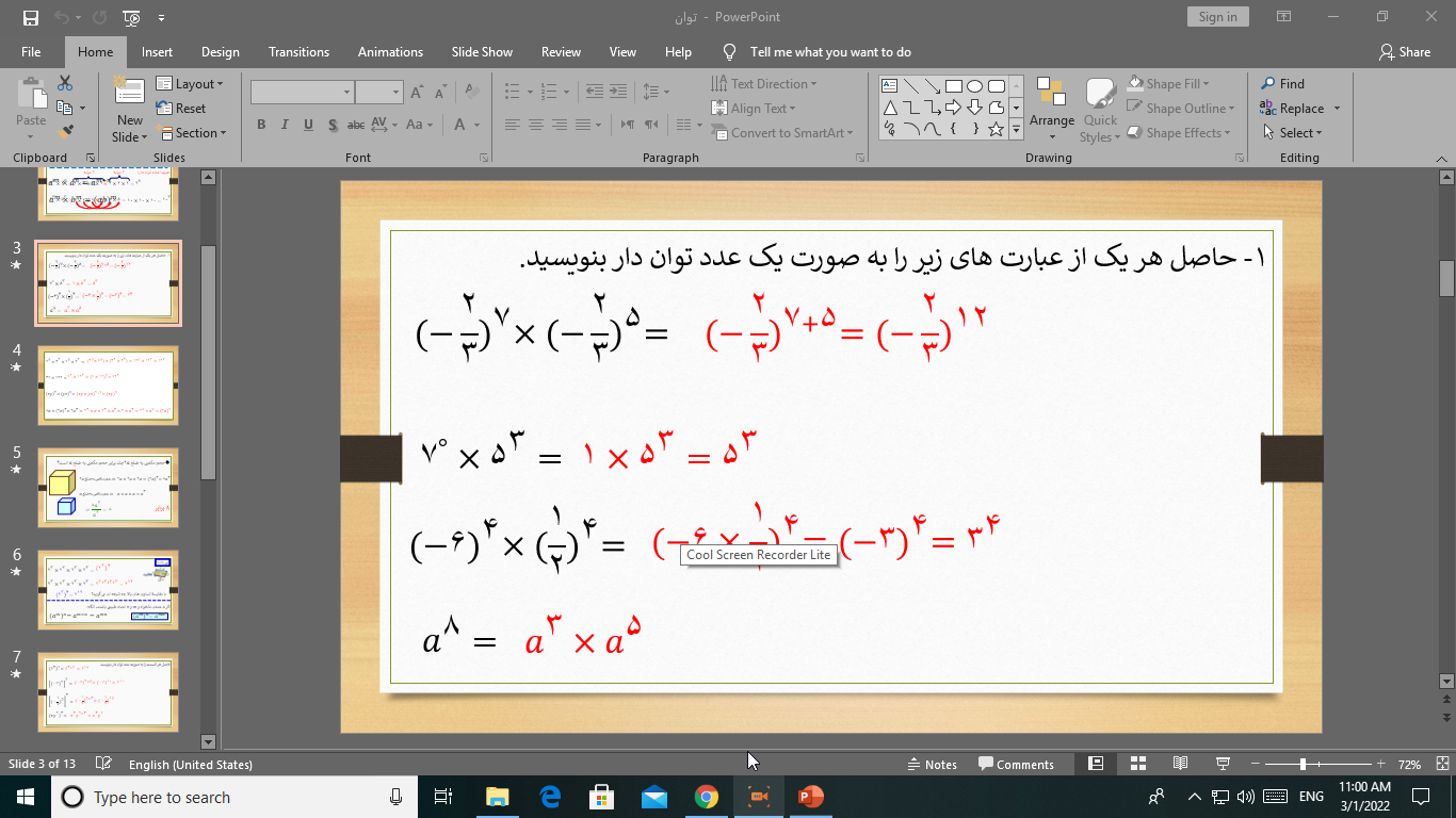 تقسیم اعداد توان دار، ریاضی هشتم