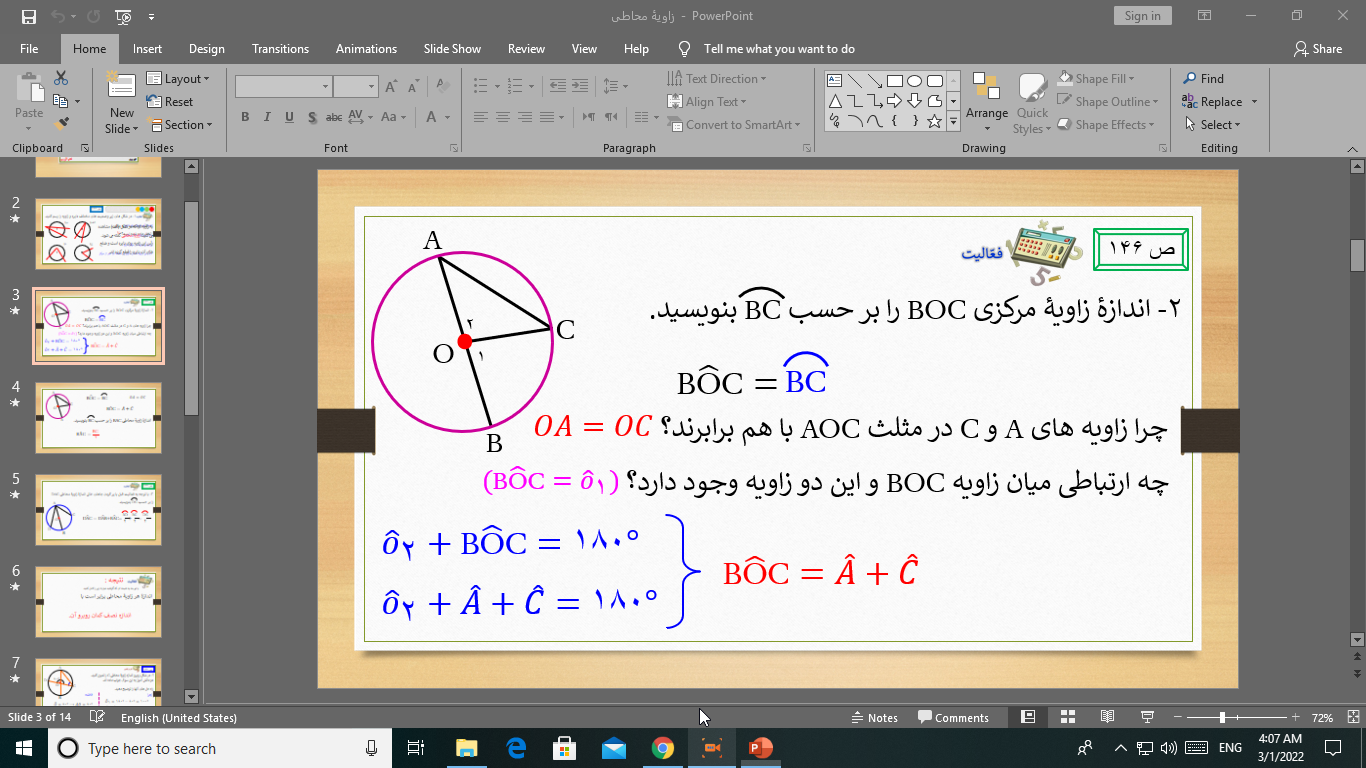 زاویه های محاطی، پایه هشتم