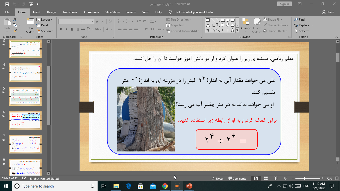 توان صحیح منفی اعداد، ریاضی نهم
