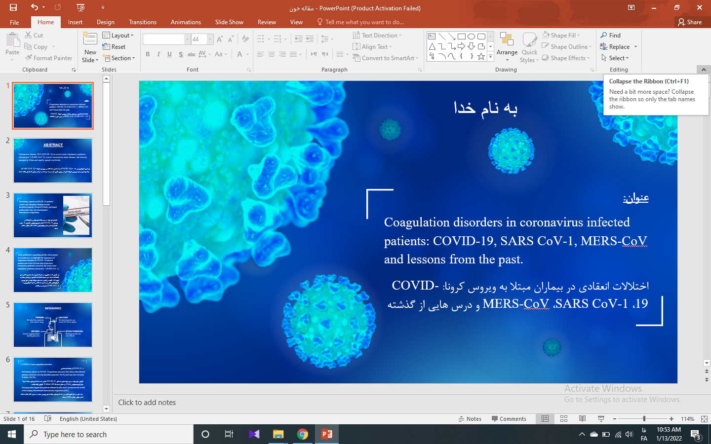 مقاله پزشکی در مورد خون اختلالات انعقادی و ویروس کرونا